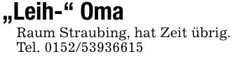 "Leih-" OmaRaum Straubing, hat Zeit übrig.Tel. ***