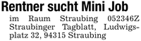 Rentner sucht Mini Job im Raum Straubing ***Z Straubinger Tagblatt, Ludwigsplatz 32, 94315 Straubing
