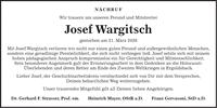 Nachruf Wir trauern um unseren Freund und Mitstreiter Josef Wargitsch gestorben am 21. März 2026 Mit Josef Wargitsch verlieren wir nicht nur einen guten Freund und außergewöhnlichen Menschen, sondern eine geradlinige Persönlichkeit, die sich nicht verbiegen ließ. Josef setzte sich mit seinem hohen pädagogischen Anspruch kompromisslos ein für Gerechtigkeit und Mitmenschlichkeit. Sein besonderes Augenmerk galt der Erinnerungsarbeit in dem Gedenken an die Holocaust- Überlebenden und deren Retter am Ende des Zweiten Weltkrieges in Ergoldsbach. Lieber Josef, der Geschichtsarbeitskreis verabschiedet sich von Dir mit dem Versprechen, Deinen beharrlichen Weg weiterzugehen. Unser trauerndes Mitgefühl gilt all Deinen lieben Angehörigen. Dr. Gerhard F. Strasser, Prof. em. Heinrich Mayer, OStR a.D. Franz Gervasoni, StD a.D.