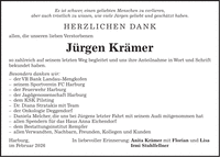 Es ist schwer, einen geliebten Menschen zu verlieren, aber auch tröstlich zu wissen, wie viele Jürgen geliebt und geschätzt haben. HERZLICHEN DANK allen, die unseren lieben Verstorbenen Jürgen Krämer so zahlreich auf seinem letzten Weg begleitet und uns ihre Anteilnahme in Wort und Schrift bekundet haben. Besonders danken wir: - der VR Bank Landau-Mengkofen - seinem Sportverein FC Harburg - der Feuerwehr Harburg - der Jagdgenossenschaft Harburg - dem KSK Pilsting - Dr. Diana Stratakis mit Team - der Onkologie Deggendorf - Daniela Melcher, die uns bei Jürgens letzter Fahrt mit seinem Audi mitgenommen hat - allen Spendern für das Haus Anna Eichendorf - dem Bestattungsinstitut Rempfer - allen Verwandten, Nachbarn, Freunden, Kollegen und Kunden Harburg, In liebevoller Erinnerung: Anita Krämer mit Florian und Lisa im Februar 2026 Irmi Stuhlfellner