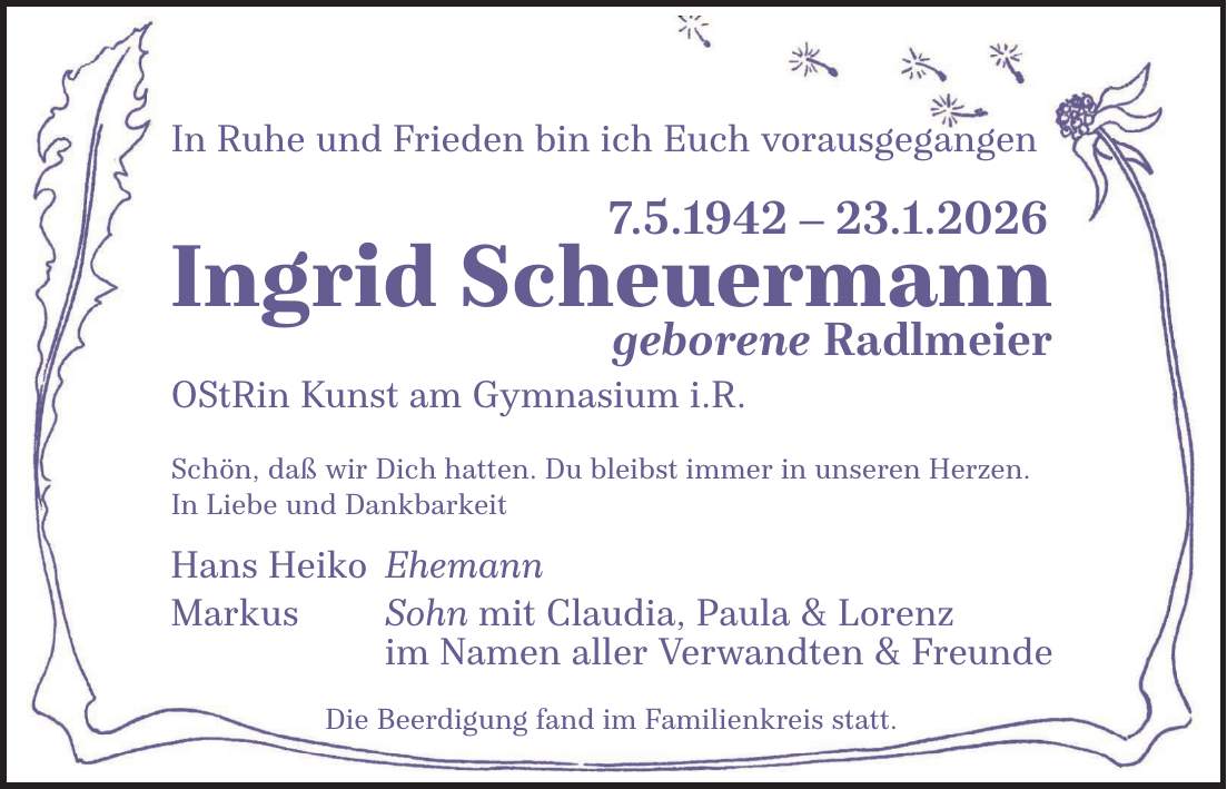 Todesanzeigen & Sterbebilder