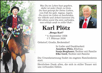 Was Du im Leben hast gegeben, dafür ist jeder Dank zu klein. Du hast gesorgt für Deine Lieben, von früh bis spät, tagaus, tagein. Du warst im Leben so bescheiden, nur Pflicht und Arbeit kanntest Du. Mit allem warst Du stets zufrieden, nun schlafe sanft in stiller Ruh'. Karl Plötz 'Benga Karl' * 4. September 1936 + 7. Februar 2026 Gehstorf, Gradis, Reckendorf In Liebe und Dankbarkeit Anneliese Plötz, Ehefrau Sonja Bergbauer, Tochter mit Familie Elke Greil, Tochter mit Familie Die Urnenbeisetzung findet im engsten Familienkreis statt. Herzlichen Dank allen, die sich in stiller Trauer mit uns verbunden fühlen.