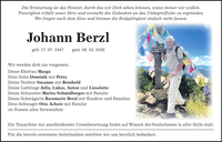 Die Erinnerung ist das Fenster, durch das wir Dich sehen können, wann immer wir wollen. Traurigkeit erfüllt unser Herz und versucht die Gedanken an das Unbegreifliche zu ergründen. Wir fragen nach dem Sinn und können die Endgültigkeit einfach nicht fassen. Johann Berzl geb. 17. 07. 1947 gest. 06. 03. 2026 Wir werden dich nie vergessen: Deine Ehefrau Marga Dein Sohn Dominik mit Petra Deine Tochter Susanne mit Reinhold Deine Lieblinge Julia, Lukas, Anton und Lieselotte Deine Schwester Marita Schmidberger mit Familie Deine Schwägerin Rosemarie Berzl mit Kindern und Familien Dein Schwager Otto Achatz mit Familie im Namen aller Verwandten Die Trauerfeier mit anschließender Urnenbeisetzung findet auf Wunsch des Verstorbenen in aller Stille statt. Für die bereits erwiesene Anteilnahme möchten wir uns herzlich bedanken.